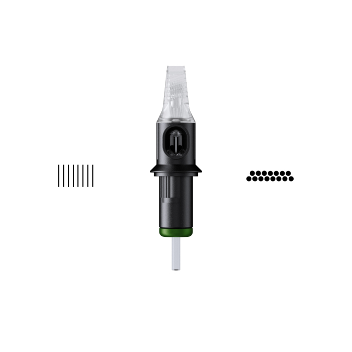 - Jævn blækfordeling af alle enkeltnåle for bedre tatoveringsresultater og færre hudskader