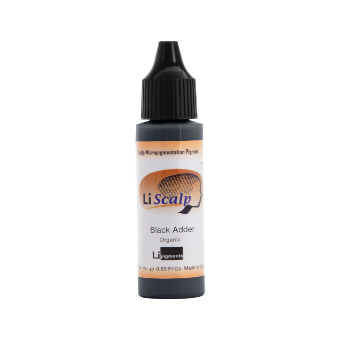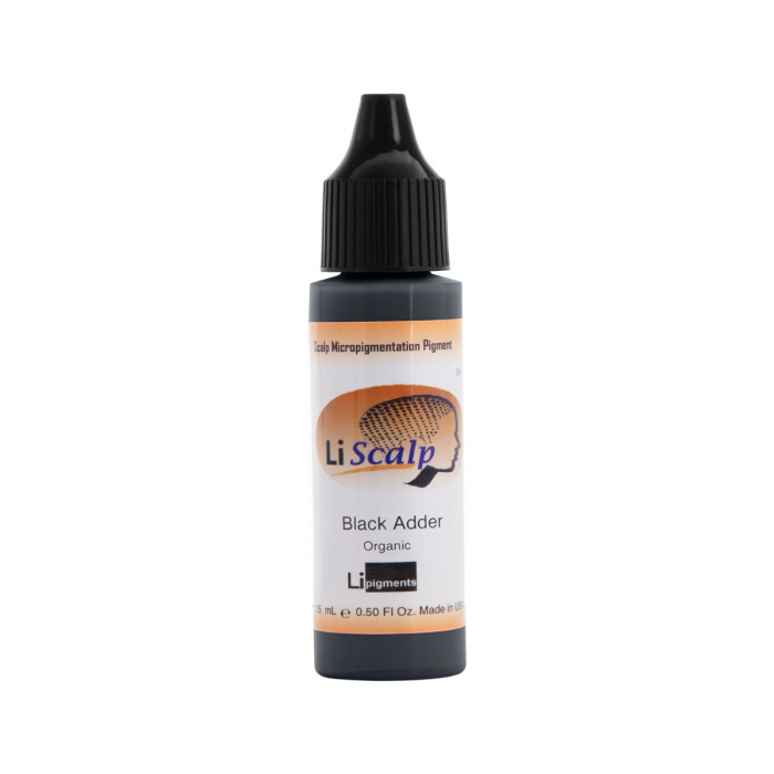 Li Pigments Black Adder er den dybeste mørke sorte farve i Li Scalp Organic-serien. Bør kun anvendes som et tilsætningsstof. Anbefales kun til brug af erfarne faglærte, da den er et kulstof sort pigment.