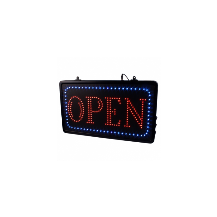LED skiltet med teksten OPEN kan hænges i dit studievindue. Leveres komplet med kæde, og kan tilsluttes direkte til en stikkontakt med en ledning der er ca. 1900mm lang. Skiltet leveres med fire forskellige indstillinger: