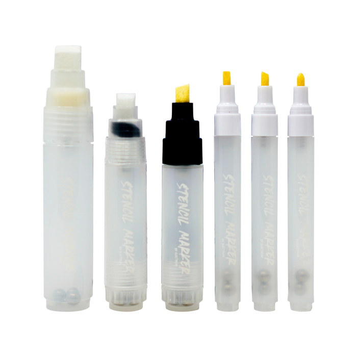 De tomme markørpenne kan fyldes med Nox Violet eller Eco Stencil Ink til længerevarende stenciler på huden, og hver pentype kommer med en udskiftelig spids.
