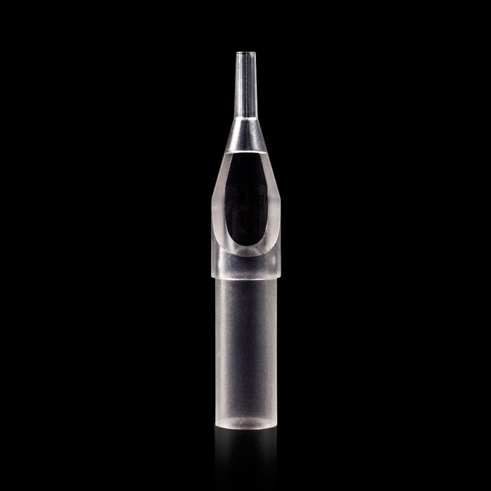 Pakke med 50 Killer Ink PREMIUM Clear engangs Round Tips. De er individuelt pakket i steril blisterpakning. Tip'en er gennemsigtig, så du kan lettere se nål og blæk.