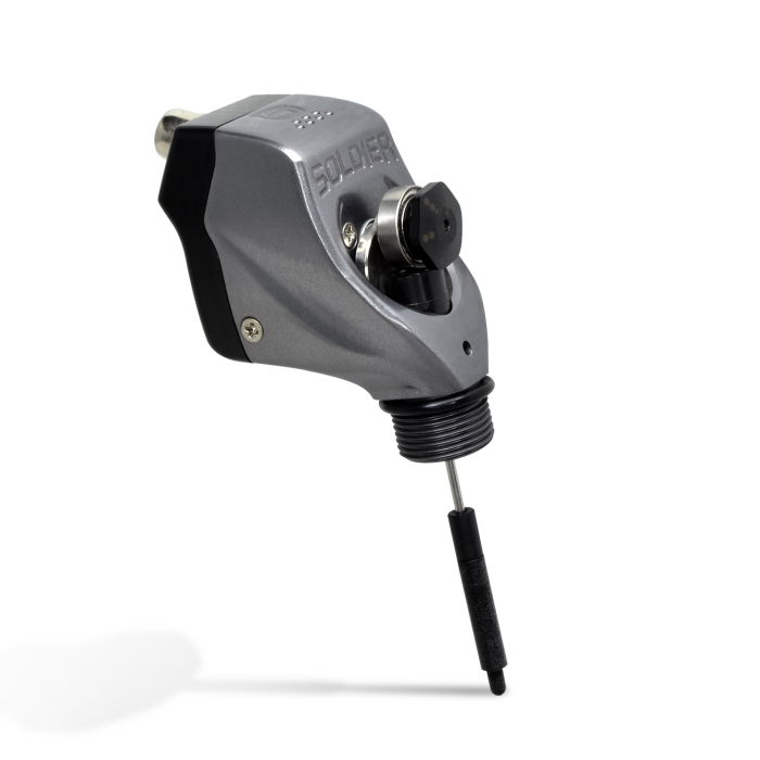 Soldier er en god maskine for dem der ønsker at bruge børsteløse motorer, der er kendt for sin stabilitet og kontinuitet over tid. Vores 5W Brushless Maxonmotor starter fra 7 volt og stiger til 14 volt. Det er også ideel til kunstnere der ønsker at ændre slaglængden og blødheden. Soldier har en unik magnetisk stroke excenter, som let kan trækkes ud og forbindes ved en anden vinkel uden hjælpe af værktøj for at opnå den ønskede slaglængde. I løbet af kun nogle få sekunder vil det bogstaveligt klikke på plads på grund af at det er magnetisk. Soldier bruger også en magnet til at skubbe fremad patronerne i 3 grader - hård, medium og blød, hvilket gør denne maskine helt tilpasses.