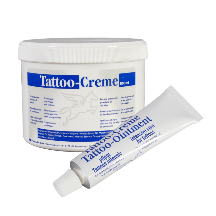 Pegasus Pro tatoveringscreme er et af Europas mest populære efterbehandlingsproukter for tatovering. Det er en specielt sammensat tatoveringscreme der hjælper med at styrke huden og hurtigt regenerere dens overfladelag.